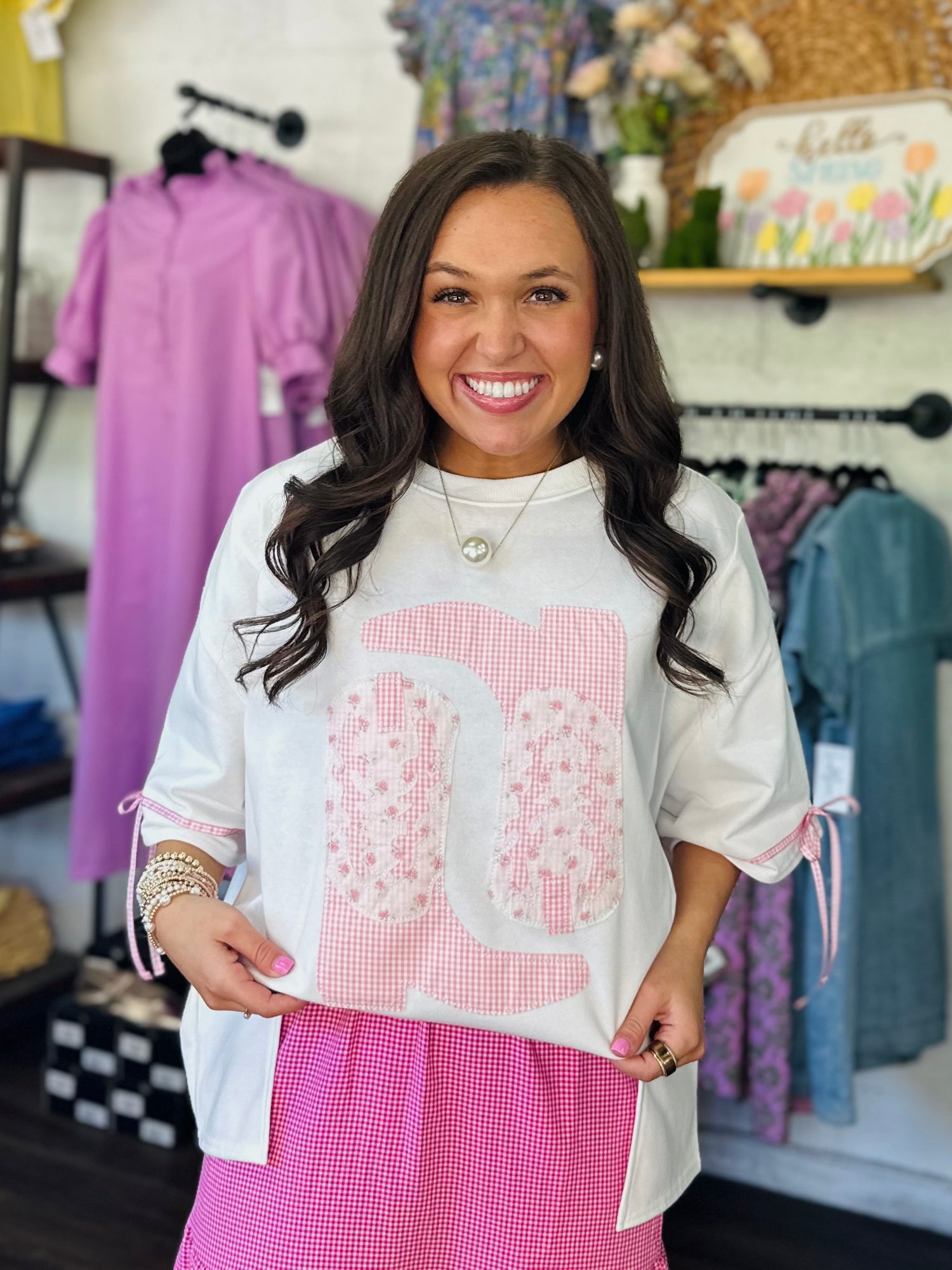 The Maggie Pearl + Gold Wide Bead Bow Pendant Necklace