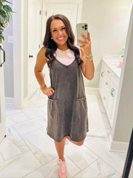The Rhea Mineral Wash Tennis Dress - Ash Navy