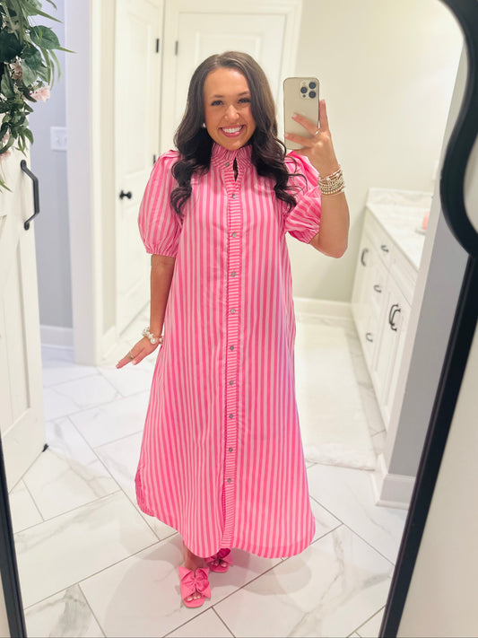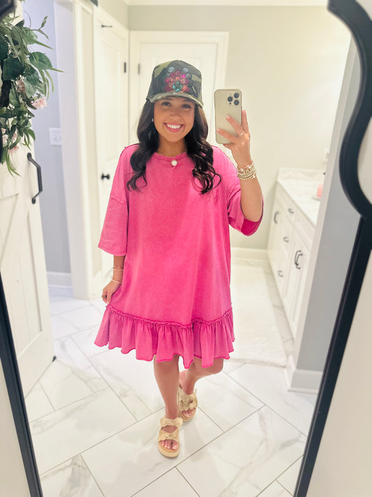 The Lena Dragon Fruit Ruffle Bottom Tunic Dress