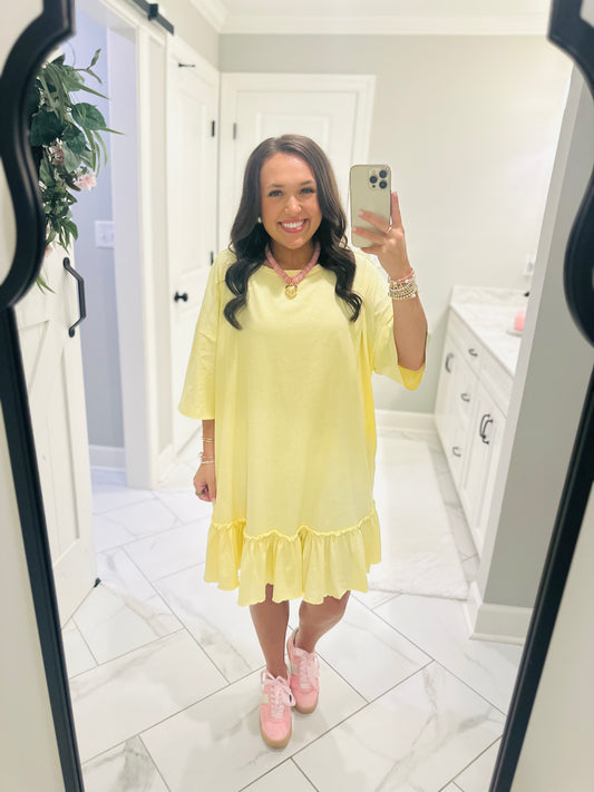 The Lena Lemon Yellow Ruffle Bottom Tunic Dress
