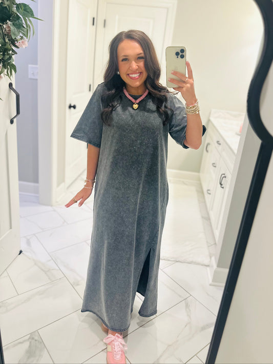The Gabi Ash Gray Mineral Wash Maxi Dress