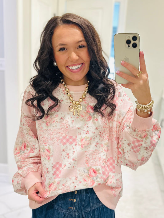 The Hadley Pink Patchwork Floral Pullover