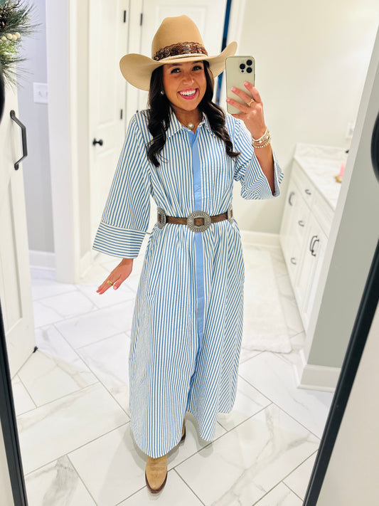 The Nora Blue Striped Midi Dress