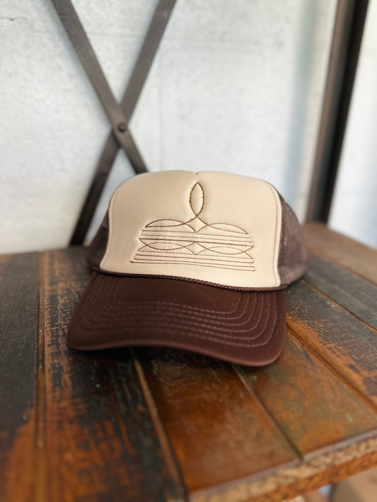 Sold outBowed Trucker Hat (Khaki/Brown)