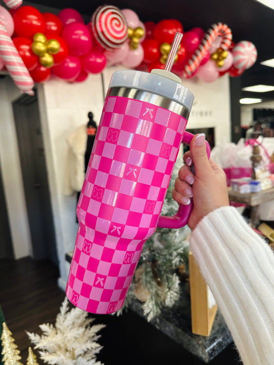 Fuchsia Bow & Checkered Print 40oz Tumbler