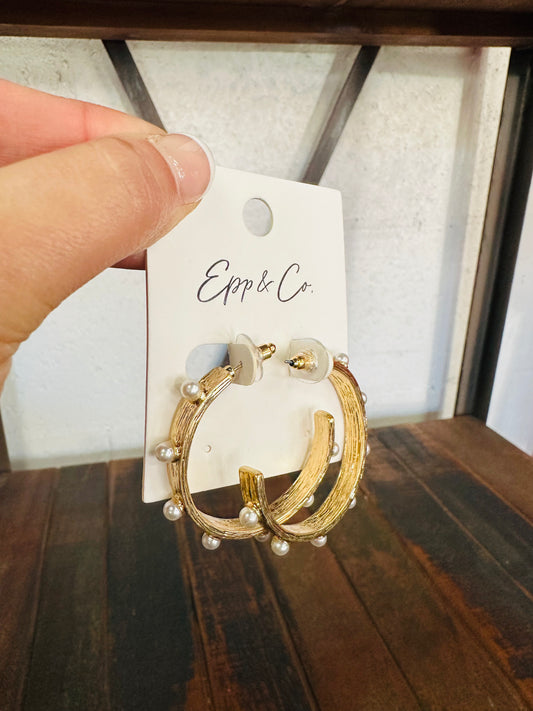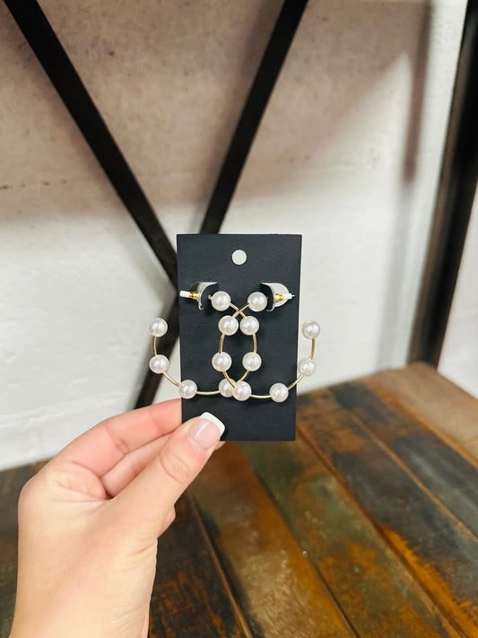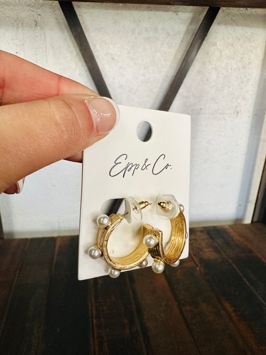 Sold outGold & Pearl Studded Hoops