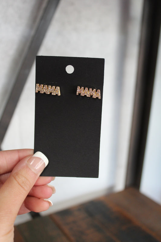 Gold & Glitzy Rhinestone Mama Stud Earrings