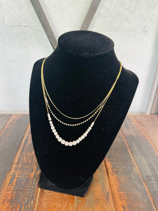 Gold Layered Pearl & Rhinestone Necklace