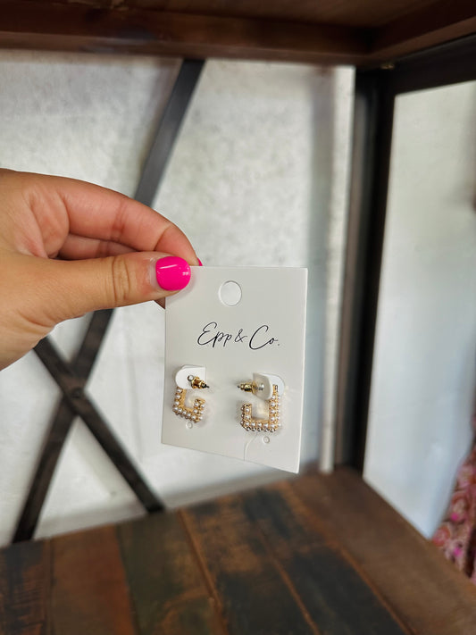 Sold outGold Mini Square Pearl Hoops
