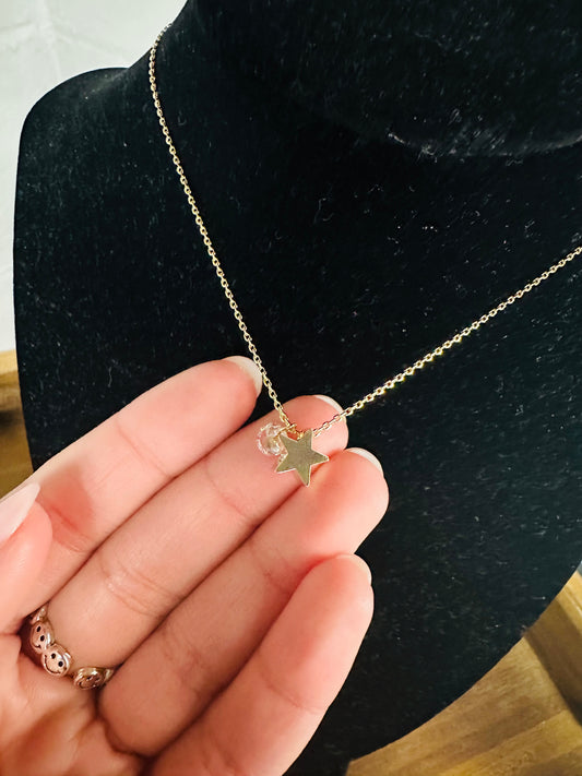 Gold Cubic Zirconia Star Dangle Pendant Necklace