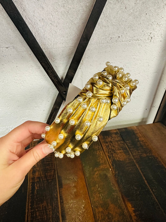 Gold Metallic Pearl Top Knot Headband