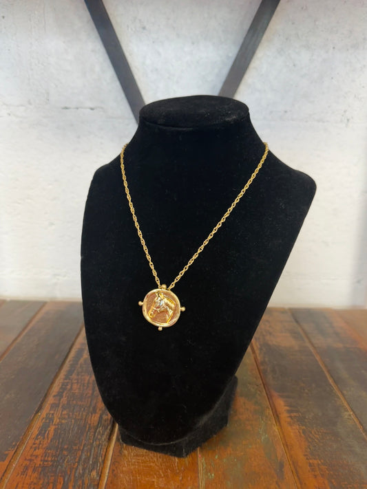 Gold Embossed Horse Coin Pendant Necklace