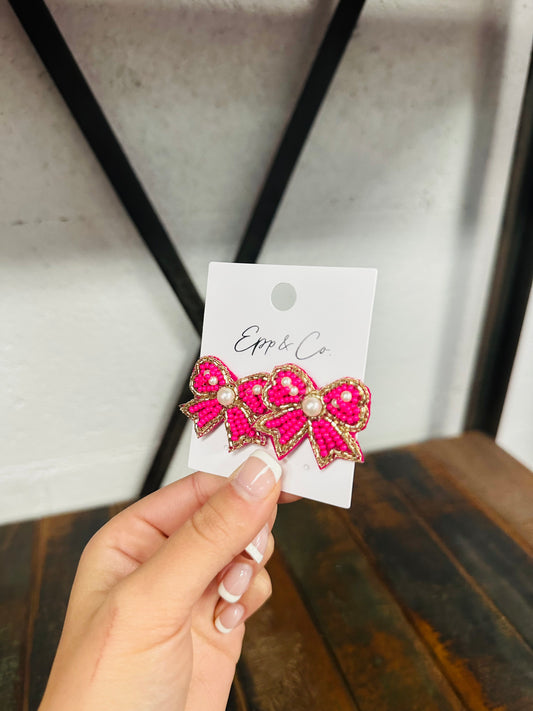 Mini Hot Pink Bow Stud Earring