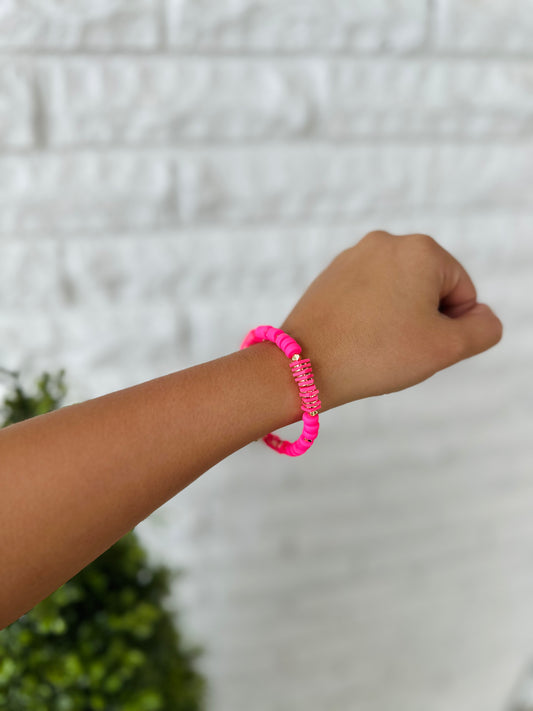 Neon Pink Heishi Chunky Bracelet