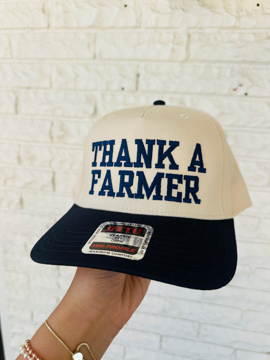 Navy 'Thank A Farmer' Embroidered Trucker Hat