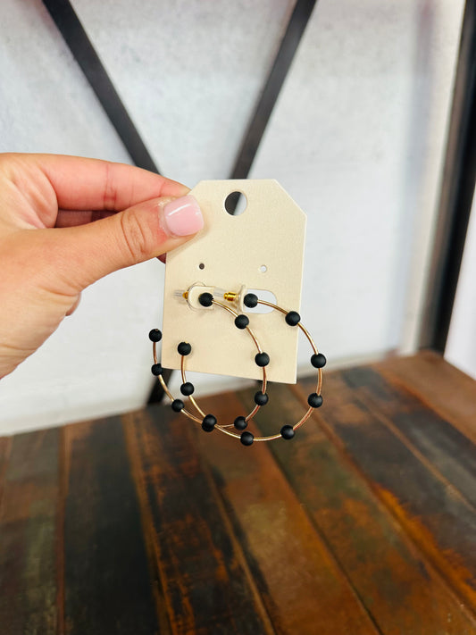 Sold outBlack & Gold Beaded Hoop Earring
