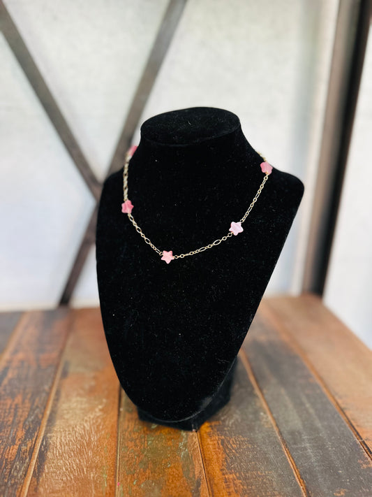 Pink Floral Silk Scarf + Gold Boot Pendant Necklace