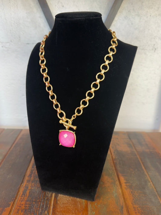 Pink Square Stone Pendant Necklace