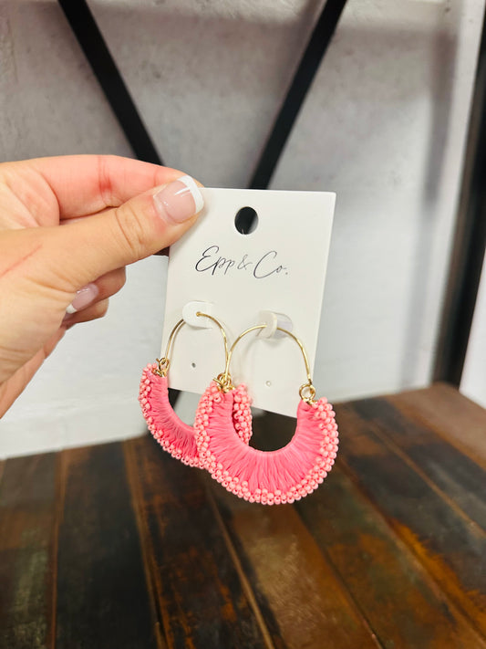 Pink Raffia & Bead Drop Earring