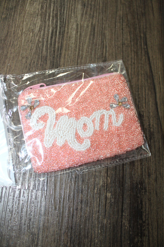 Pink Mom Beaded Pouch