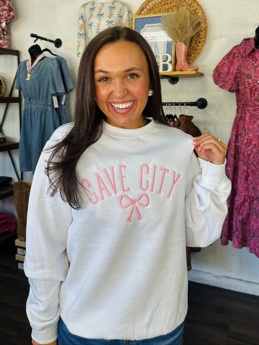The Cave City Pink Bow Embroidered Sweatshirt