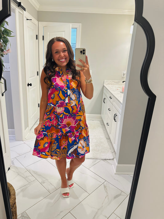 The Ella Long Sleeve Pleated Dress - Black / Denim