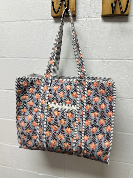 The Green + Pink Ivy Floral Quilted Tote Bag
