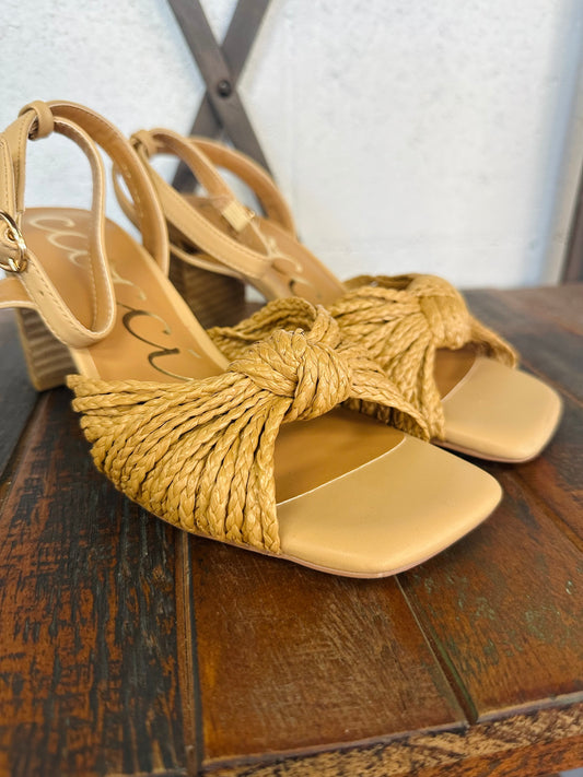 The Joyce Raffia Knot Ankle Strap Heels