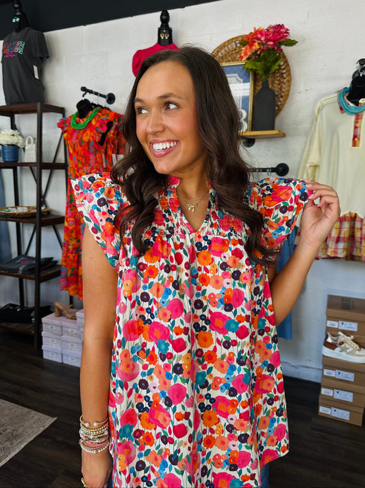 Sold outThe Keli Floral Ruffle Sleeve Top