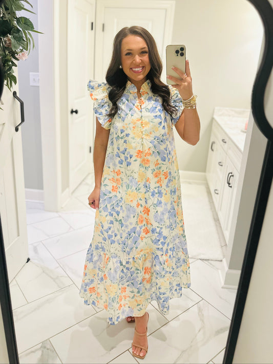 The April Blue Floral Embroidered Maxi Dress
