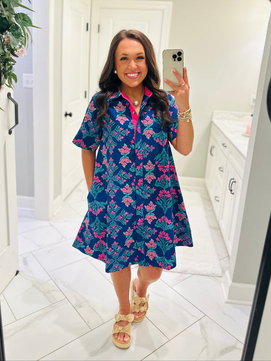 Sold outThe Sutton Navy Floral Dress