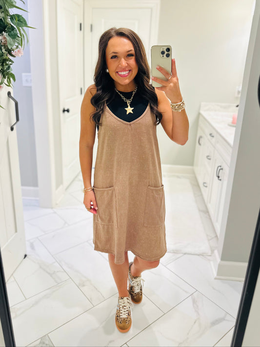 The Rhea Mineral Wash Tennis Dress - Latte