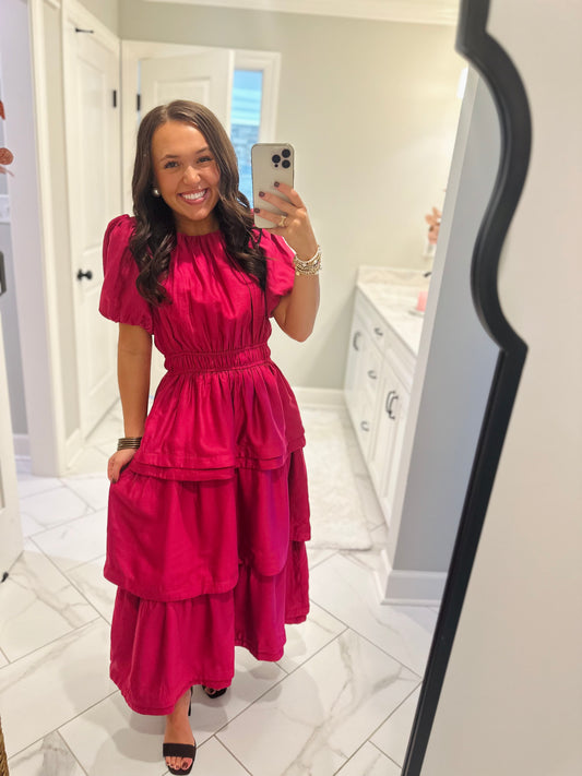 The Sophia Magenta Pink Ruffle Tiered Maxi Dress