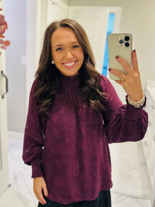The Ava Plum Floral Jacquard Top
