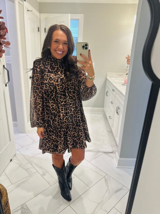 Sold outThe Della Leopard Bow Dress