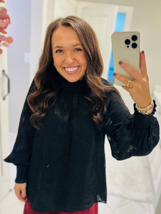 The Ava Black Floral Jacquard Top