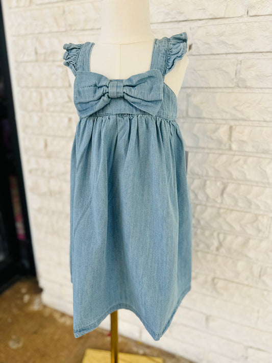 The Girls Light Wash Denim Bow Dress