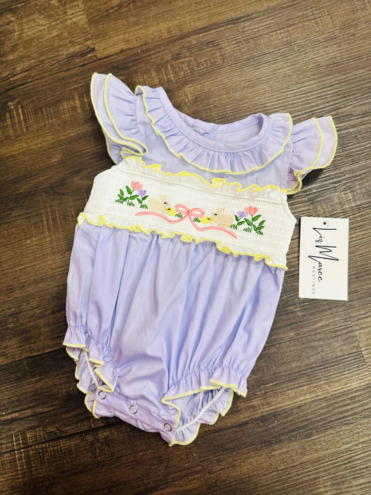 The Lavender Easter Smocked Embroidered Bubble - Infant