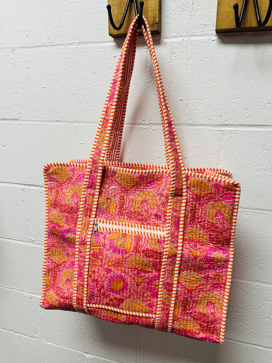 The Orange Oasis Floral Quilted Tote Bag