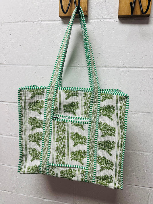 The Green + White Floral Quilted Tote Bag