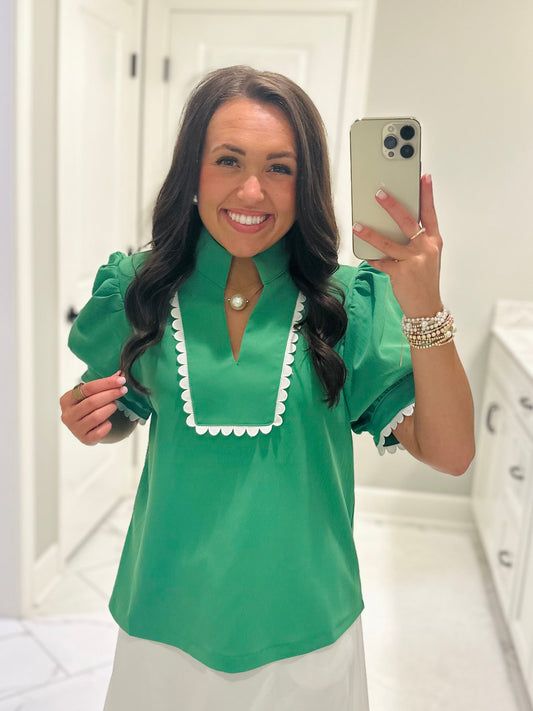 The Faye Kelly Green Scallop Detail Top