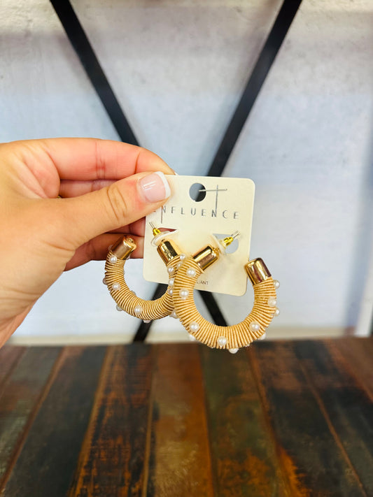 Pearl & Raffia Hoop Earring