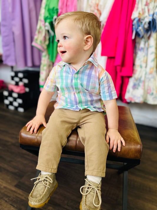 The Boys Plaid Short Sleeve Button Down Shirt