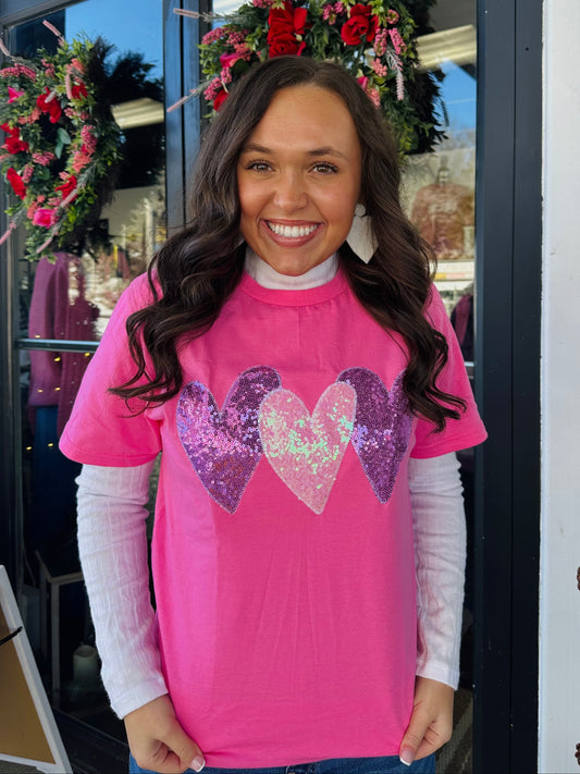 Be Mine Valentine Heart Trio Embroidered Tee