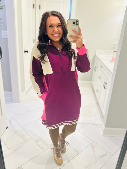 The Mal Purple + Pink Colorblock Quarter-Zip Dress