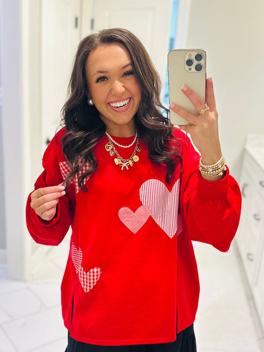 The All the Love Red Heart Patchwork Sweatshirt