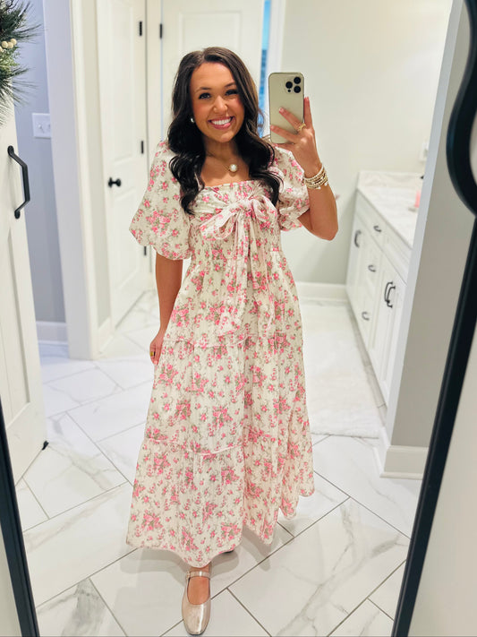 The Lola Floral Tiered Bow Front Midi Dress