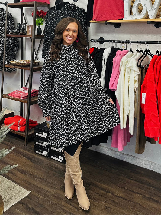 The Rhea Chocolate Brown Floral Long Sleeve Bow Detail Dress