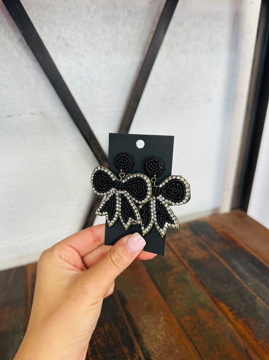 Black Beaded Bow Earring