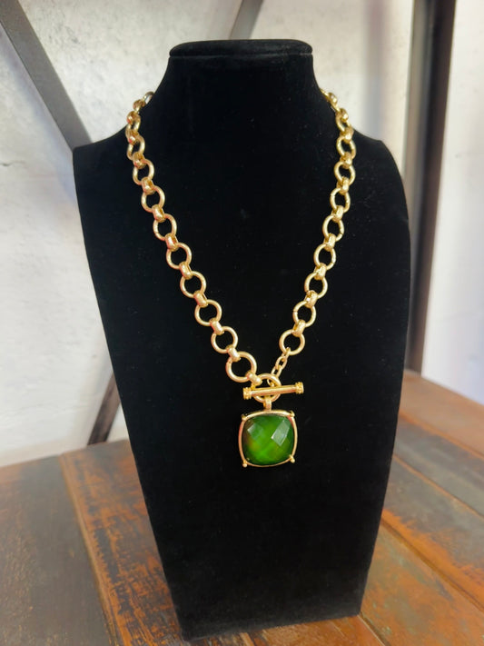 Dark Green Square Stone Pendant Necklace